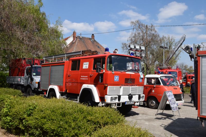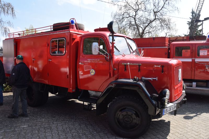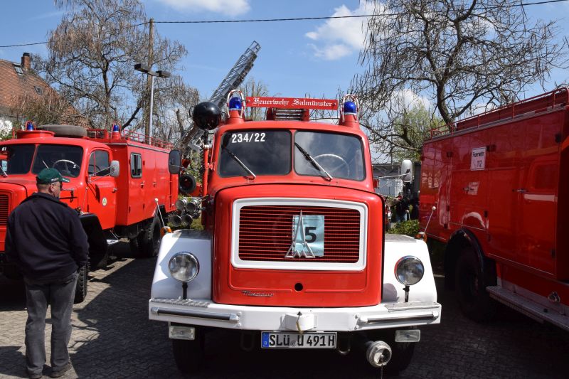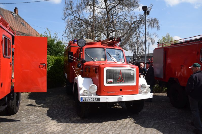 Da wurde es auf dem vorgesehen Parkplatz am Bahnhof ganz schön eng. ALs besonderes Highlight war der "alte Stockheimer Fuhrpark" wieder vereint. Die Anhängeleiter 16/4 sowie das LF 8 und der ELW standen nach vielen Jahren nun wieder zusammen in Stockheim. "Da kommt schon ein bisschen Wehmut auf", sagte der 2. Vorsitzende als er vor den 3 Fahrzeugen aus Stockheim stand. Die meisten Kameraden kennen die Fahrzeuge noch zu gut von vielen vergangenen Einsätzen.
