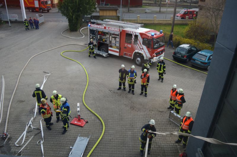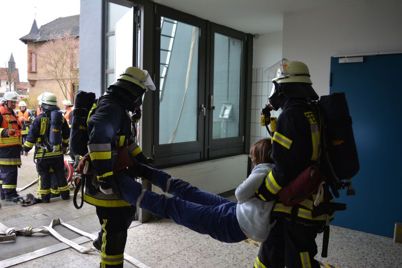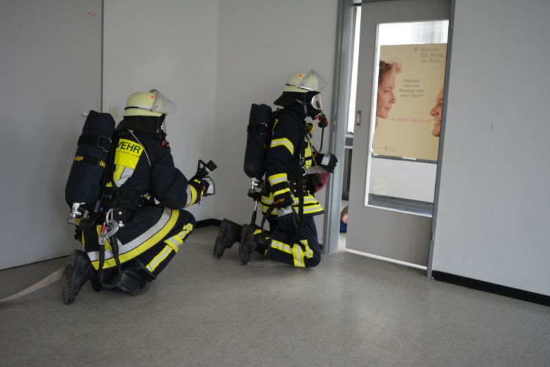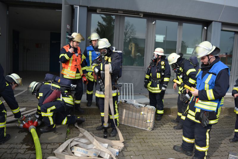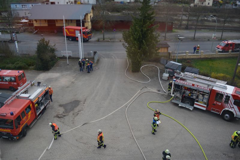 Am vergangenen Sonntagvormittag wurde die Jahresauftaktübung der Feuerwehren der Gemeinde Glauburg aus Stockheim und Glauberg am Gebäude der TELEKOM in der Bahnhofstraße in Stockheim durchgeführt. Von der Übungsleitung wurde als Ausgangslage ein Feuer in einem Büro im Erdgeschoss mit insgesamt 5 Vermissten Personen im Gebäude angenommen. Nach dem Eintreffen wurden daher sofort insgesamt 5 Trupps unter Umluft unabhängigen Atemschutz zur Menschenrettung und Brandbekämpfung eingesetzt. Eine Person musste unter Vornahme einer tragbaren Leiter aus dem 1. Obergeschoss „gerettet“ werden. Zusätzlich erfolgte der Aufbau der Wasserversorgung über Hydrant aus der Bahnhofstraße. Trotz der beachtlichen Größe des Gebäudes mit 2 Untergeschossen und 5 Obergeschossen konnten alle vermisste Personen nach kurzer Zeit durch die Trupps „gerettet“ werden. Bei der Anschließenden Begehung durch das gesamte Gebäude konnten sich alle nochmal ein Bild von der Größe des Gebäudes und den damit verbundenen sehr langen Wegen machen. An dieser Stelle möchten wir uns für die Möglichkeit zur Durchführung der Übung ausdrücklich bei Herrn Greif von der TELEKOM bedanken.