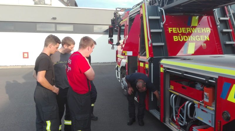 Hintergrund dieser Übung war, dass alle einen kurzen Einblick in die Technik und Ausstattung der neuen DL(A)K 23/12 aus Büdingen gewinnen können. Denn dieses Fahrzeug wird bei bestimmten Einsatzstichworten sofort mit den Feuerwehren aus Glauburg alarmiert oder, falls benötigt, noch nachträglich zur Einsatzstelle nachalarmiert. Durch die Neubeschaffung der Drehleiter in Büdingen waren einige Kameraden nicht mehr mit dem aktuellen Einsatzmittel vertraut. Zusätzlich besteht die Gruppe 1 aus sehr vielen jungen Kameradinnen und Kameraden die durch solche Übungen an Erfahrung sammeln sollen.