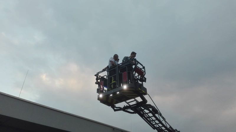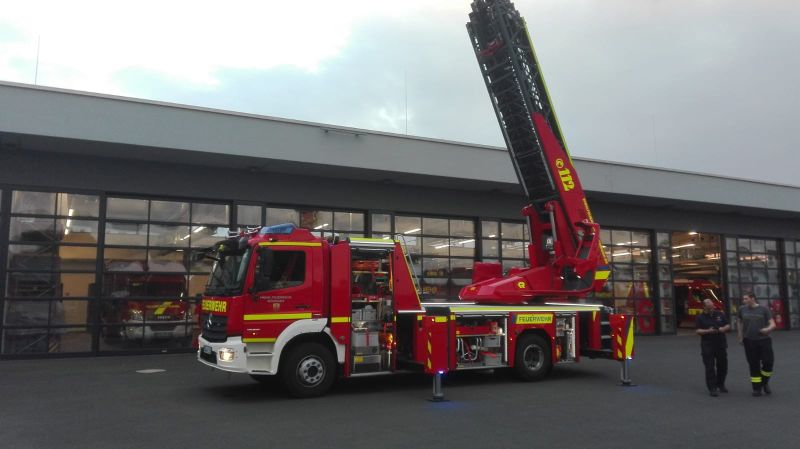 Nach einer grundlegenden Fahrzeugkunde ging es in die „Praxis“ über. Wobei Praxis daraus bestand in kleinen Gruppen in die Höhe zu fahren und die Bedienung des Leiterparks und Korb erklärt zu bekommen, natürlich durfte man es auch selbst versuchen um die Feinheiten kennenzulernen.