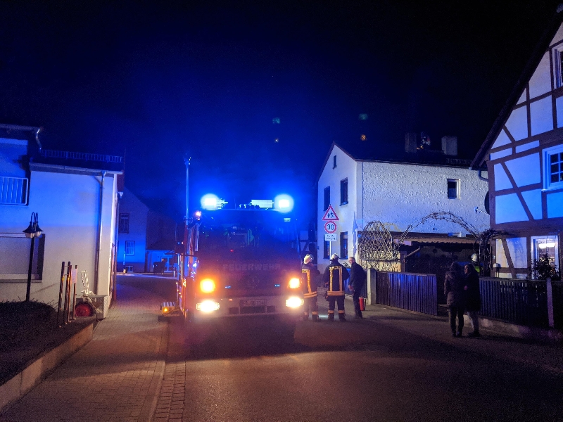 Ein Nachbar hatte gesehen, dass aus einem Kamin „bis zu 2m hohe Flammen schlagen“ und die Feuerwehr informiert. Vor Ort wurde die Feuerwehr durch den Nachbarn, welcher in der Zwischenzeit auch die Hausbewohner informiert hatte, erwartet.