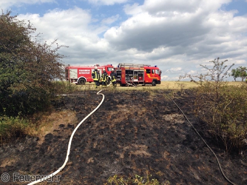An der Einsatzstelle brannten ca. 500m2 Gras und Hecke, so dass umgehend das TLF 24/50 der Feuerwehr Altenstadt nachgefordert wurde.