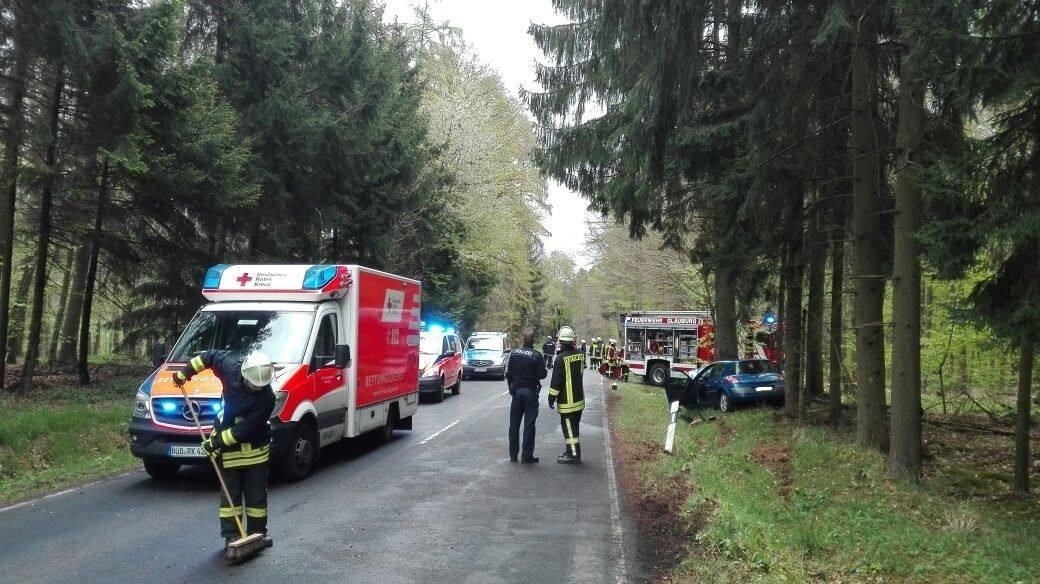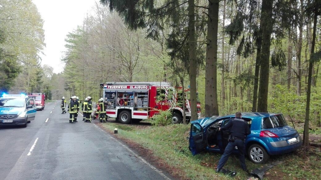 Am Ostermontag, dem 17. April 2017 wurden die Feuerwehren der Gemeinde Glauburg sowie der Rettungsdienst und die Polizei um 14:40 Uhr mit dem Einsatzstichwort „Technische Hilfeleistung-VU Klemm“ auf die Landstraße L3190 zwischen Stockheim und Nieder-Mockstadt zu einem Verkehrsunfall mit eingeklemmter Person alarmiert. Ca. 100m vor dem alten Waldparkplatz war ein PKW von der Straße abgekommen und in dem angrenzenden Waldstück gegen einen massiven Baum geprallt.
