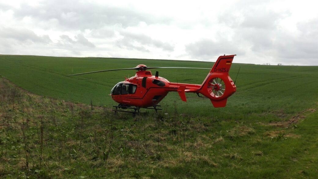 Da das Verletzungsmuster einen Transport in eine Klinik mit Maximalversorgung notwendig gemacht hatte, wurde noch ein Rettungshubschrauber angefordert. Hier unterstützte die Feuerwehr ebenfalls noch beim Transport des Verletzten von der Straße zum etwas abseits gelegenen Landeplatz des Hubschraubers.