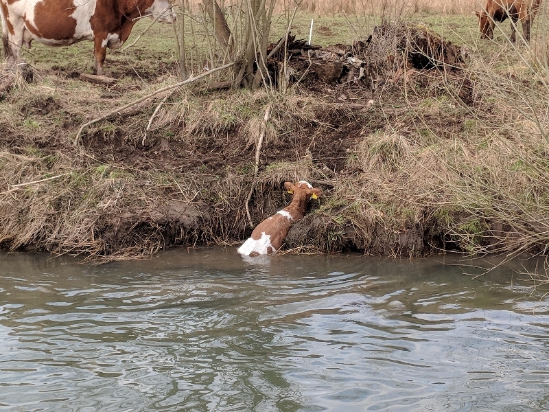 Am Samstag, dem 24. April 2018 wurde die Feuerwehr Stockheim um 12:35 Uhr zu einer Hilfeleistung in der Nähe der Kläranlage alarmiert. Vor Ort sollte sich nach Aussage eines Anrufers ein Kalb im Bachlauf der Nidder befinden und diesen aus eigener Kraft nicht mehr verlassen können.