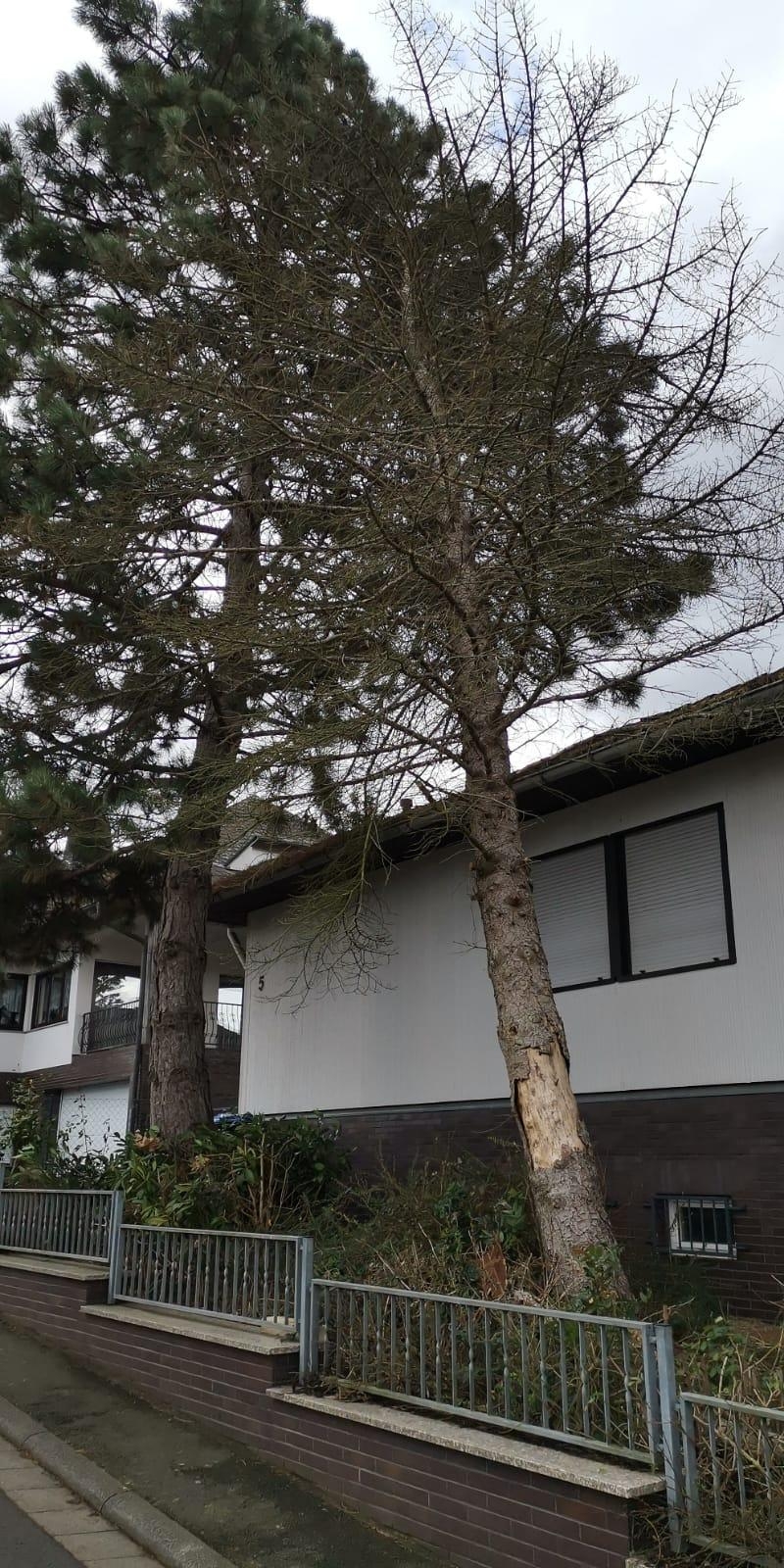 Am Sonntag, dem 10. März 2019 wurde der Wehrführer der Feuerwehr Stockheim gegen 14:15 Uhr telefonisch von einem Anlieger über einen Sturmschaden im Finkenweg informiert. Dort sollte durch den anhaltenden Sturm eine ca. 10-12m hohe Fichte in gefährlicher Schräglage gekommen sein.