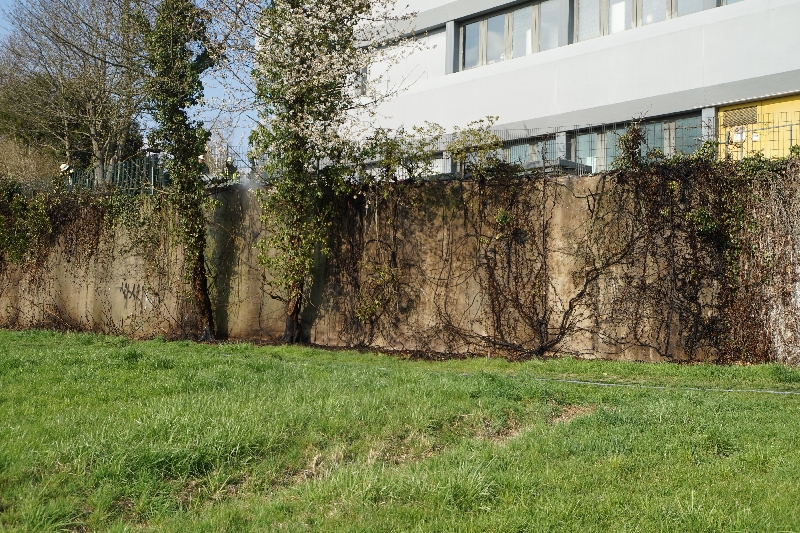 Die ersten Einsatzkräfte konnten die Meldung nach dem Eintreffen bestätigen. Eine Hecke an einer ca. 7-8 m hohen Stützmauer brannte auf einer Länge von ca. 100m. Das Feuer breitete sich nach beiden Seiten weiter aus.