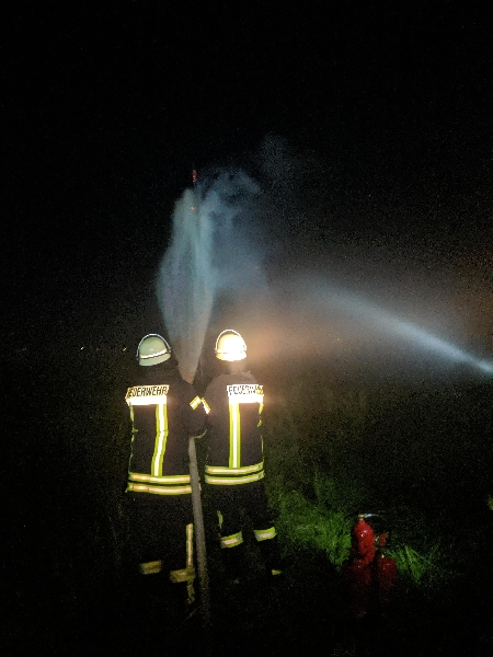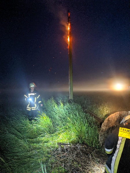 Über die TS des TSF wurde dazu Wasser aus einem Flutgraben in unmittelbarer Nähe zum brennenden Mast entnommen und das Feuer mit Hilfe eines C-Rohres abgelöscht.